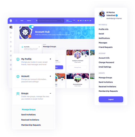Ayrıca, grupları yönetebileceğiniz ve oluşturabileceğiniz, üyeleri kontrol edip terfi ettirebileceğiniz (örneğin modlar ve yöneticiler) davetiye gönderebileceğiniz ve özel grup isteklerini yönetebileceğiniz, gruplara özel bir bölüm de bulacaksınız!