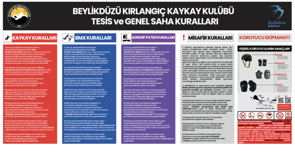 Kaykay Kulübü Kurallar Tabelası: Tesisimize gelmeden önce lütfen aşağıda yer alan kurallar tabelasını dikkatlice okuyunuz.